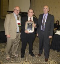 Dr. Paul J. Price (center) receives the Lifetime Achievement Award from Dave Songstad (L) and Eugene Elmore (R)