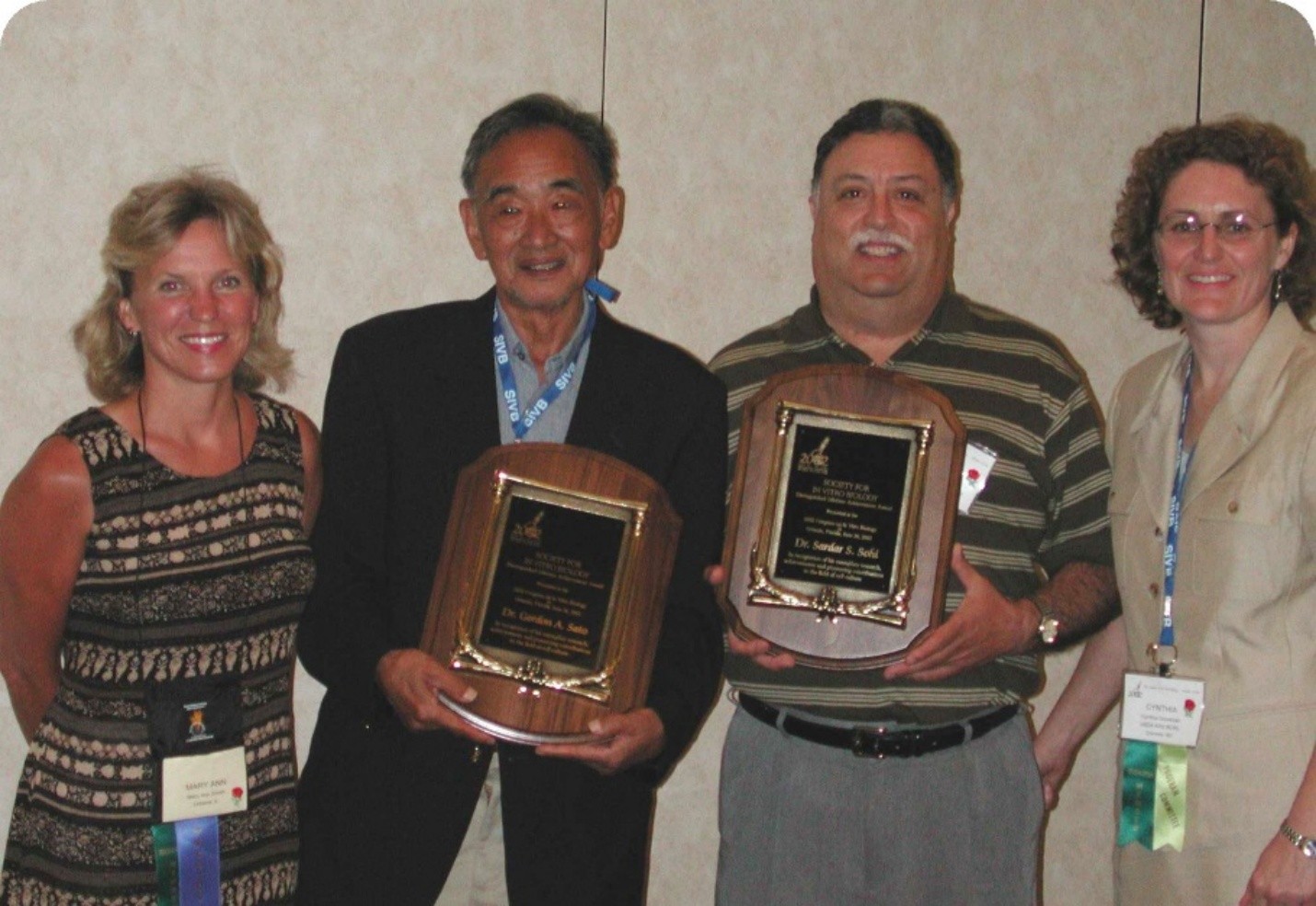 Left to right: Mary Ann Lila, Gordon Sato, Guido Caputo (holding his Fellow Award), Cynthia Goodman